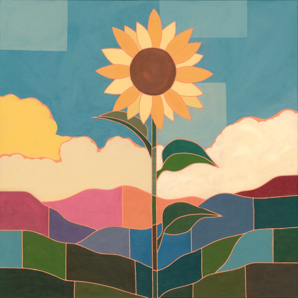 I create geometric acrylic landscapes and wildlife that explore the balance between order and wildness. My work simplifies the natural world into color, shape, and rhythm — seeking stillness, grace, and connection through structure.