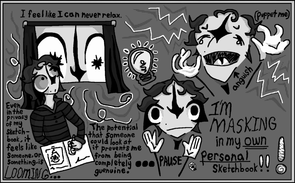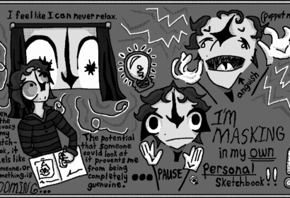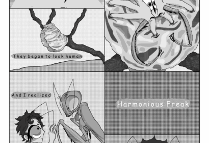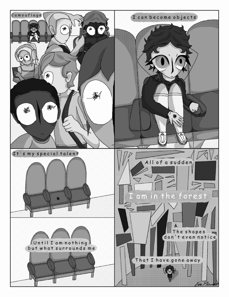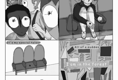 When writing, she loves to use omniscient narration with a strong personality, and creates art that speaks from a place deep within herself that she doesn’t quite understand. Her witty storytelling, which ranges from personal anecdotes to oddball short-fiction, and extensive charm interacts with her art in a way she guarantees you haven’t seen before, and if you have you’ll find yourself taking a fondness to it regardless. Her words, not mine.