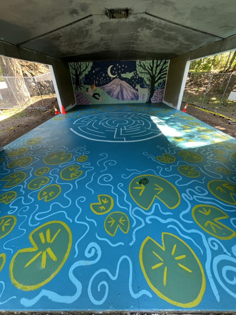 Experience: I have painted over a dozen murals of my own design in the Spokane area since 2019, the majority solo and outdoors, and have assisted or collaborated on a handful more. I love working with neighborhoods and local business districts to add art to our community. As far as asphalt murals, I designed and installed a temporary asphalt mural in Airway Heights in 2021 as part of a traffic calming and community outreach project, as well as volunteered to paint with Tiffany Patterson on her basketball court mural for a few hours in 2020. I was also a contracted mural repair artist for Spokane Arts in 2021 and touched up various murals around the city. I have experience working with neighborhood councils and am wrapping up a large collaborative public sculpture installation with Lisa Soranaka at the border of Emerson-Garfield and North Hill. I coordinated with and received support from both neighborhoods, both the Garland and North Monroe Business Districts, and the Spokane Arts Commission, and coordinated with multiple city departments on the installation plans. I also worked with the North Monroe Business District for my “Blossom” mural in 2020. I am drawn to creating site responsive art in part because I love the process of including details and symbols that are meaningful to the space and its audience, building layers of meaning through imagery and wordplay, and working in features that are both locally relevant and universally felt. My art tends to be colorful, uplifting, and a bit whimsical.