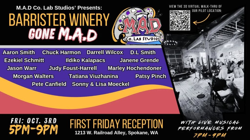 First Friday featuring M.A.D. Co Lab Studios art with music by Stagecoach West. There is no cover charge. Doors will open at 5pm. The music starts at 7pm. This is a 21 & over only event. Although we do not serve food, you are welcome to bring in your own to enjoy at your table! (Please no outside beverages or personal water bottles.) Beer & NA Beer Options Available